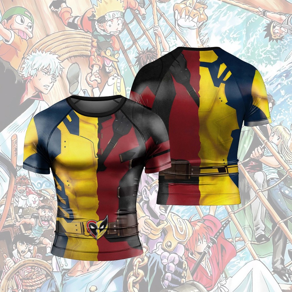 The Half Deadpool And Wolverine Men Short Sleeve Compression Shirt