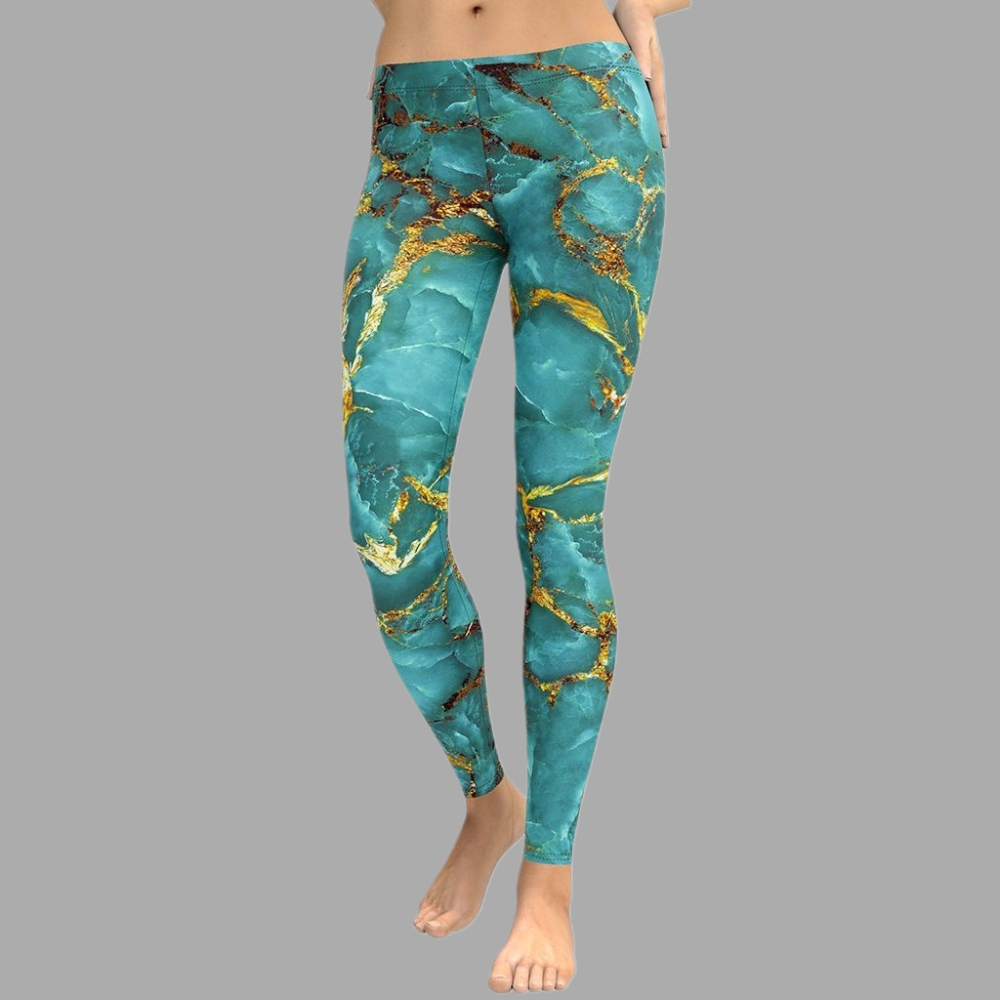 Turquoise And Gold Marble lady Compression Legging