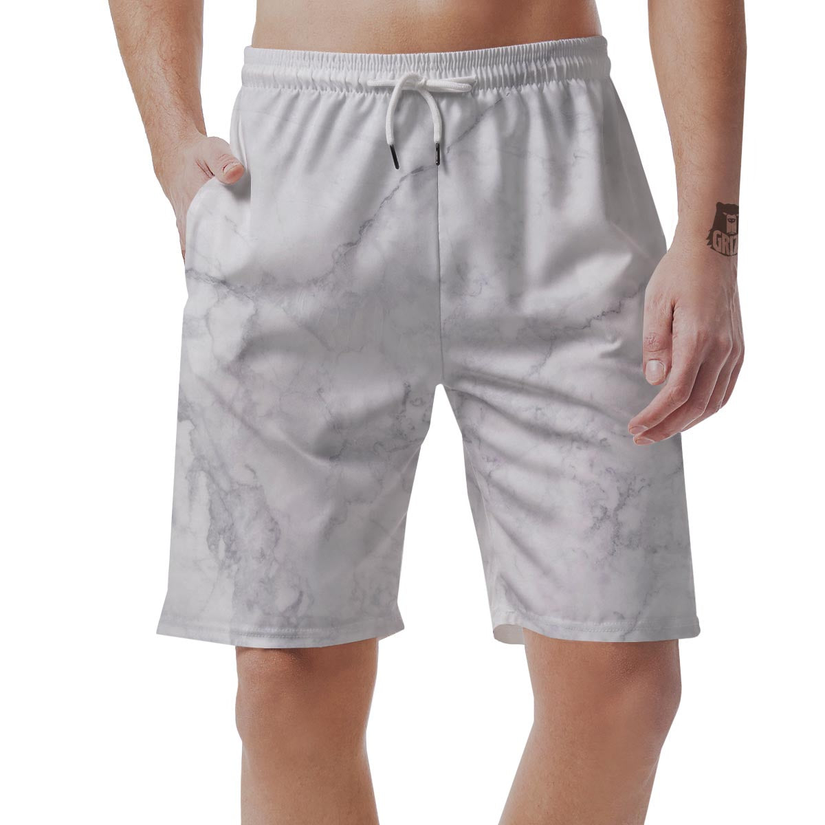 White Marble Mens Beach Short