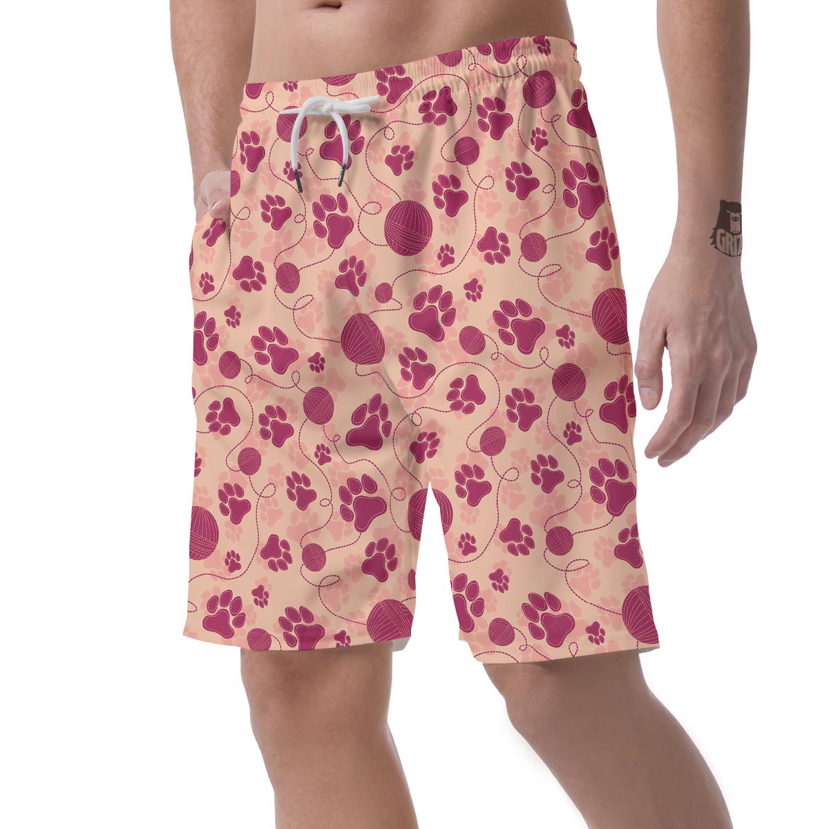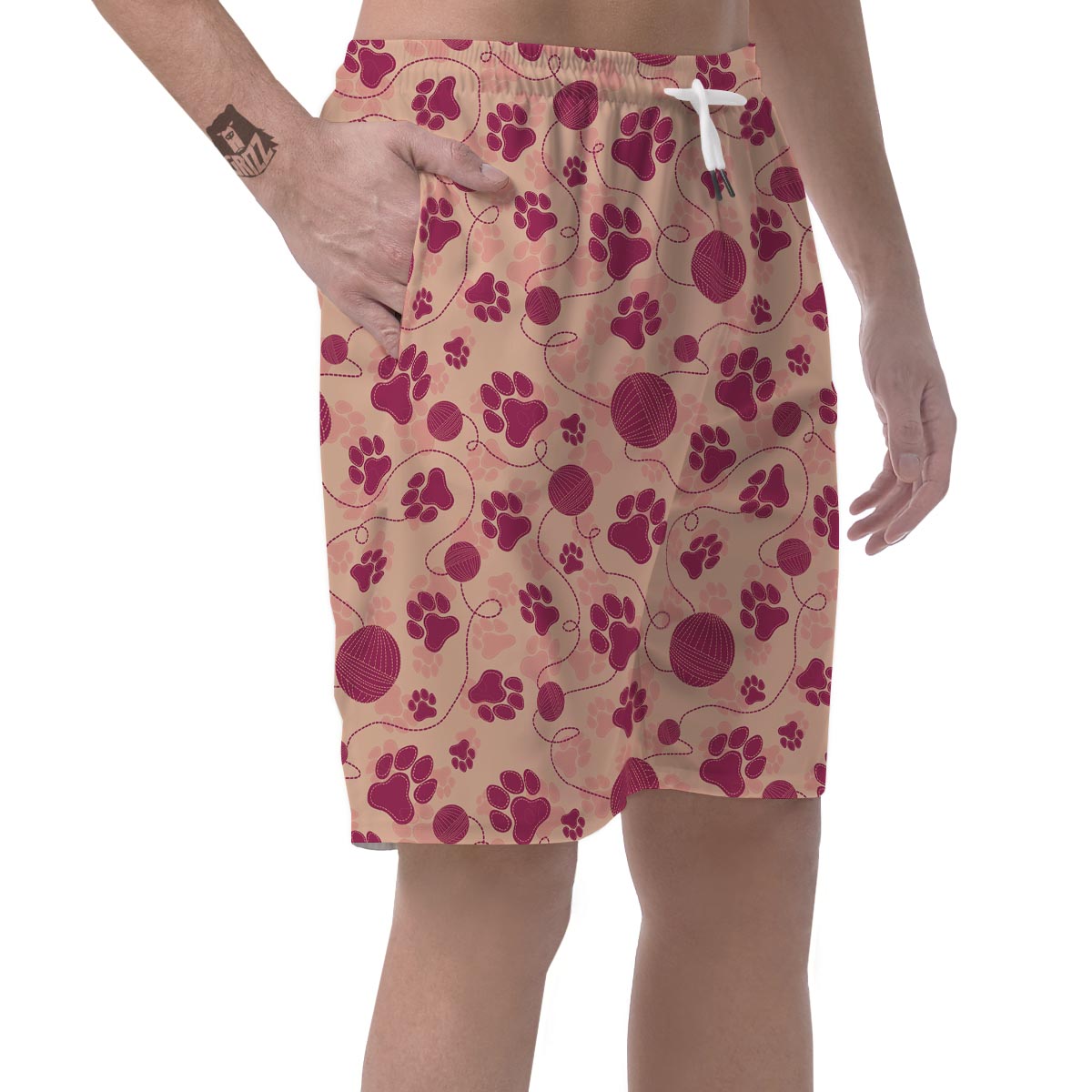 Yarn Paw Print Mens Beach Short